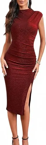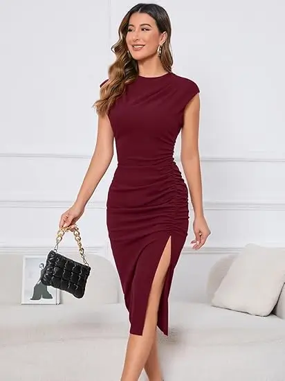 The IHOT 2026 Women’s Mock Neck Side Slit Ruched Bodycon Midi Dress is a flattering option for cocktail parties, weddings, and other dressy occasions where you want a sleek and elegant look. The mock neck gives it a refined feel, while the ruching helps shape the body and the side slit adds both style and easier movement. Buyers looking for a fitted midi dress that can be styled with heels, a clutch, and simple jewelry should find this dress both versatile and easy to wear