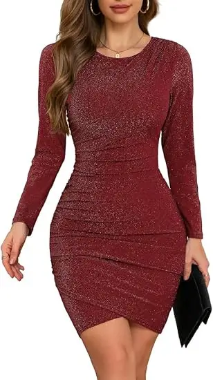 The IHOT Women’s Glitter Party Dress is a strong option for nights out, holiday parties, and special events where you want a more eye-catching look. The faux wrap front, ruched bodycon fit, and sparkly finish help create a flattering shape, while the long sleeves and crew neck add a bit more coverage and balance to the mini length. Buyers who want a fitted party dress with shine and stretch should find this style appealing, especially when paired with simple heels and minimal accessories