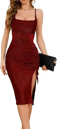 The IHOT Women’s Square Neck Side Slit Sparkly Glitter Ruched Bodycon Midi Dress is a great pick for parties, club nights, and special occasions when you want a fitted and eye-catching look. The square neckline gives it a modern shape, while the ruching and side slit help create a more flattering fit and easier movement. Buyers who want sparkle without giving up a sleek silhouette should find this dress especially appealing, and it pairs well with heels and simple accessories