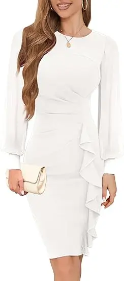 The IHOT 2026 Women’s Long Sheer Sleeve Ruched Sheath Bodycon Dress is a polished option for cocktail parties, work events, dinners, or more formal gatherings. The ruched sheath silhouette helps create a flattering shape, while the long sheer sleeves add a dressy, elegant detail that offers a bit more coverage without feeling heavy. Buyers looking for a fitted dress that balances sophistication and versatility should find this style easy to wear with heels, a clutch, and simple jewelry